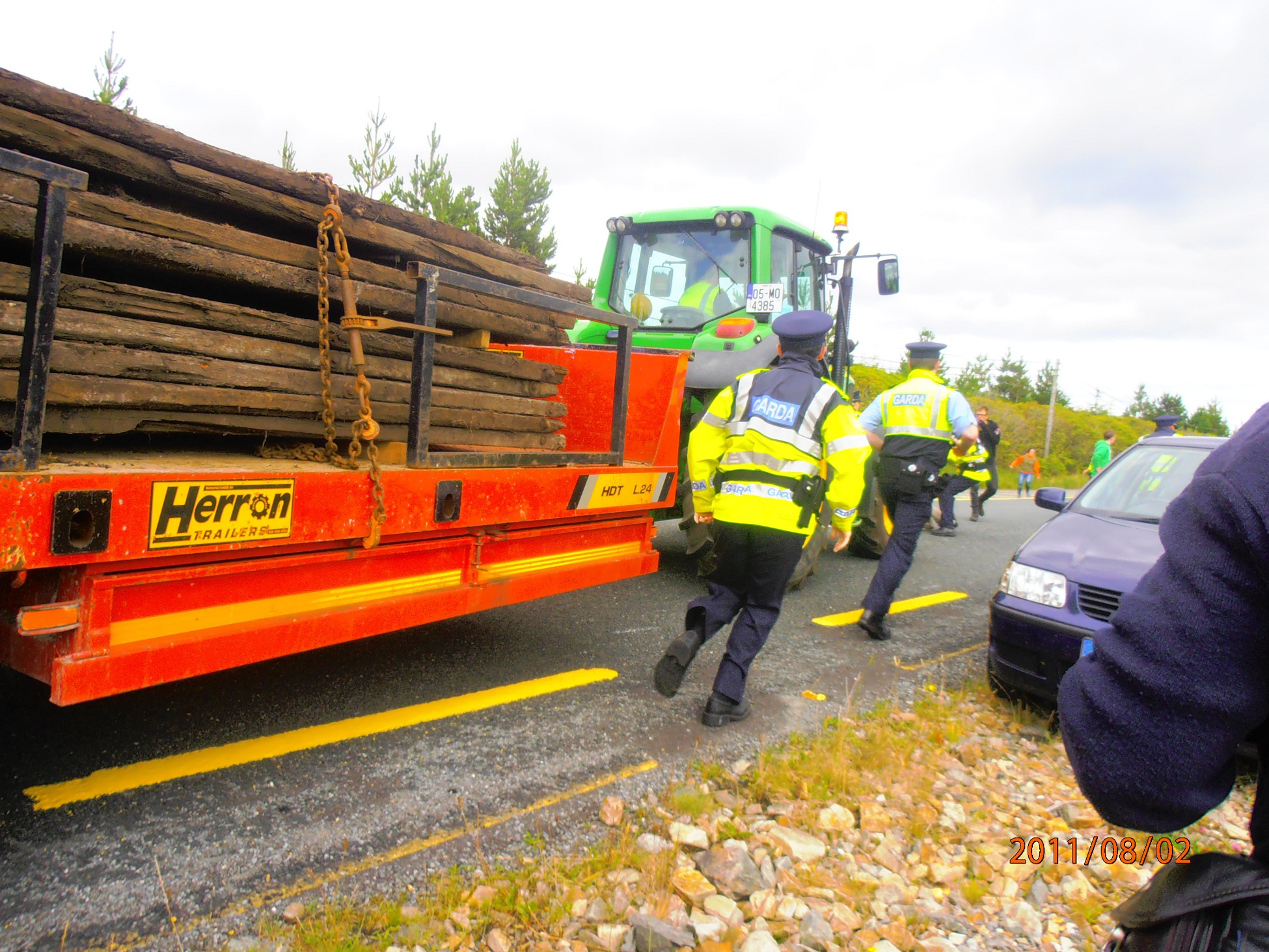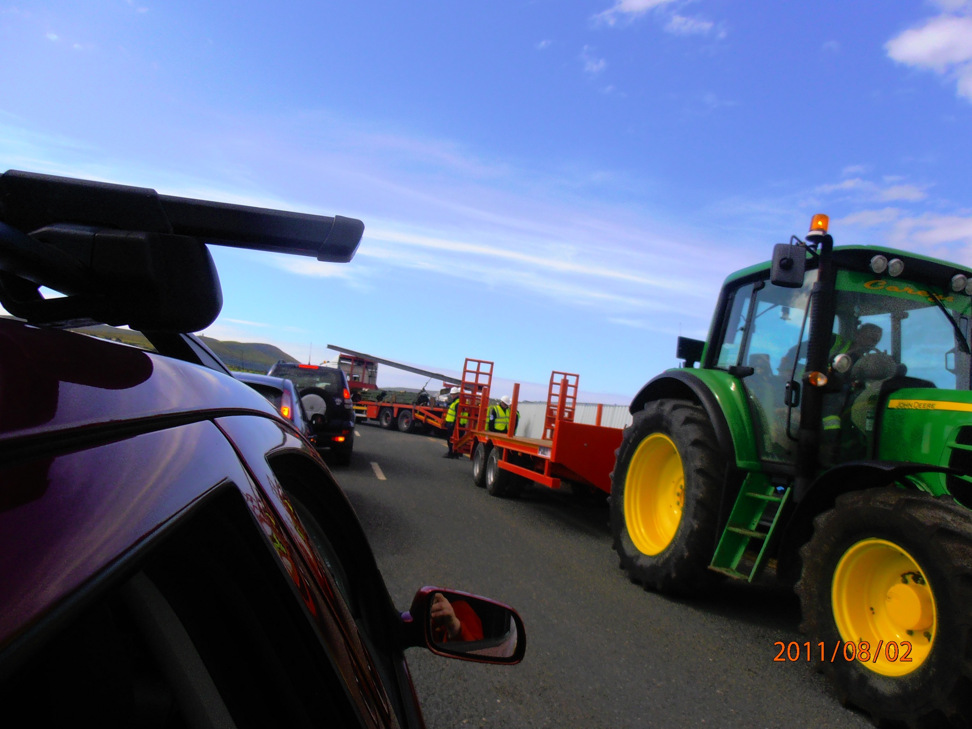 A traffic jam on the public road as IRMS blocks the road once again to move their equipment