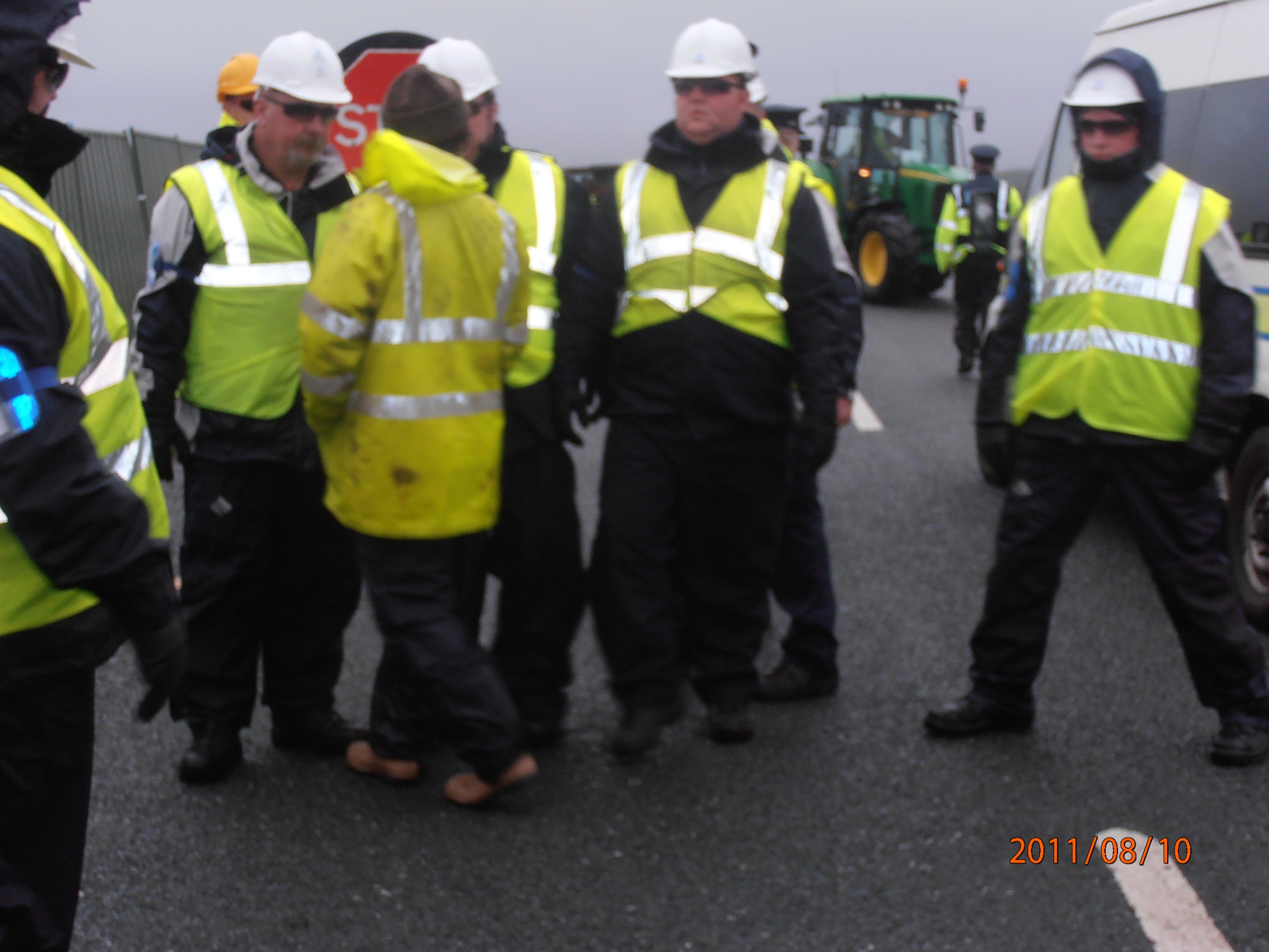 At approx 6.40 am this morning, Wednesday 9th August, members of Rossport Solidarity Camp entered Shell's pipe laying compound at Aughoose. Shell is attempting to extend its existing compound to facilitate the arrival of its tunnel boring machine. A total of about 70 I-RMS security guards removed 10+ protesters from the compound with force. Gardai were standing by to assist the I-RMS, however, they were faced with a difficult legal predicament: which law could they use to restrain or arrest a protester? Without the free reign of "public order" legislation, the Gardai could only reproach protesters if the private land owner, Shell, requested it. One protester was arrested for refusing to give a name and address. Gardai are entitled to request a name and address only if the person in question is, within reason, suspected of breaking a law. In short, a garda must tell a person why he/she is requesting a name and address. The gardai were having difficulty locating such a reason. It is unclear whether or not Shell asked the Gardai to intervene. With the negative public relations image Shell has acquired for itself in Ireland due to the Corrib project, it is thought that Shell are reluctant take any court proceedings against protesters. The IRMS was policing the entire road outside the Aughoose compound at various points. This writer has personally seen I-RMS security guards unlawfully act in a manner only warranted to police officers of the state. Despite assurances by Superintendent Pat Diskin who in an article written by Irish Times reporter, Lorna Siggins, denied claims by Shell to Sea that the private security company, I-RMS, was closing roads at Aughoose. This morning the I-RMS did block the road unlawfully. Rossport solidarity camp members, as well as members of the Gardai, witnessed these actions. Gardai are legally obligated to maintain the public order on all public highways at all times whenever possible. This morning I-RMS were exempt from the laws of the state. Two protesters were assaulted by I-RMS security guards, with one of the protesters being punched in the face. Complaints have been made to the Gardai and statements have been given on the matter. Meanwhile, Rossport Solidarity Camp members stopped work this afternoon at Shrahmore peat deposition site from 4pm until 7pm. This is the second consecutive day that work in Shrahmore has been halted by protesters. If you want to visit the camp there is plenty for everyone; join in the protests, or help in the garden, or help with site maintenance. The camp is located in a field in Aughoose, between Ballinaboy and Pullathomas. Ring the camp at 0851141170 or email at rossportsolidaritycamp[at]gmail[dot]com |