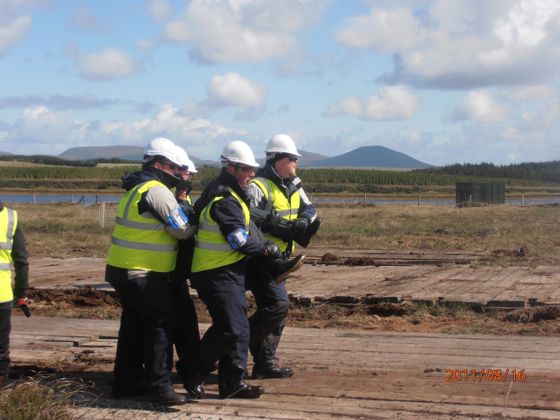being carried off the compound