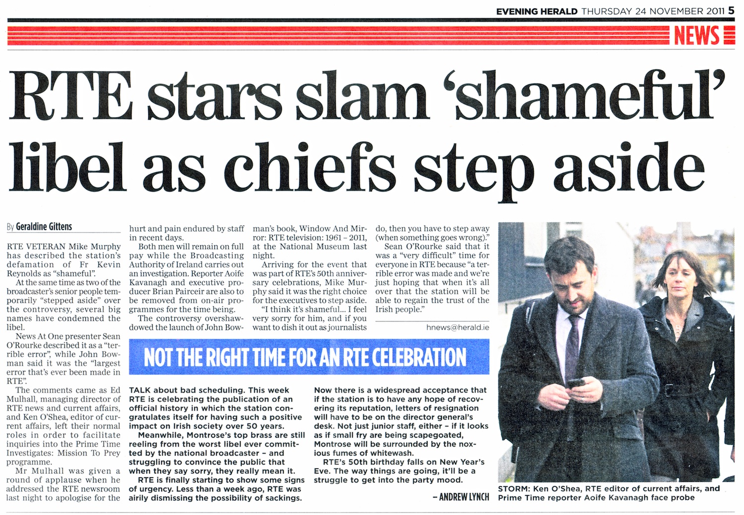 This whole story is wierd. RTE's legal department seem to have ignored the most routine checks you would expect given the protests from the slandered priest(in advance of the broadcast). None of the offenders dismissed. As you say, an easy target, given that all the heavy lifting on the issue is long done.