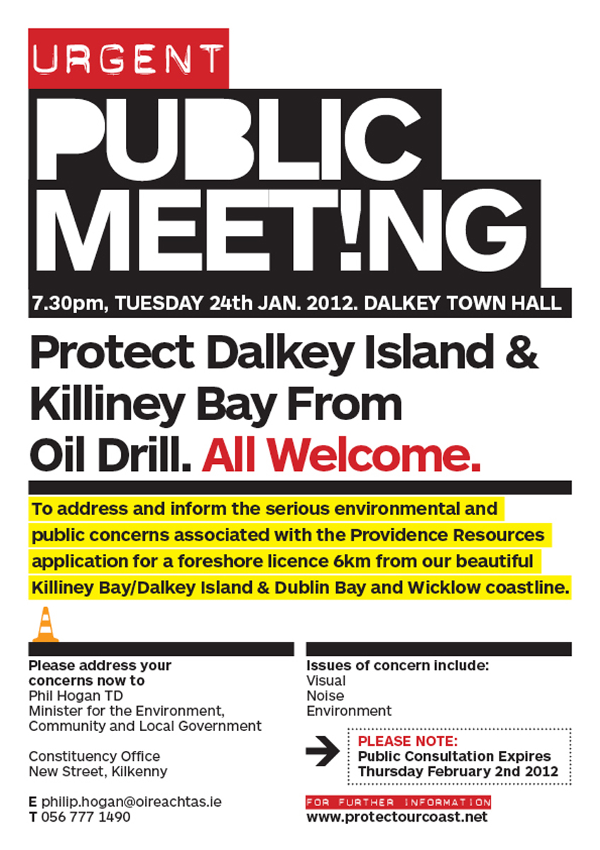 A massive oil drilling has been planned a mere 6km off the coast of Dublin, directly off Dalkey Island for later in 2012. with the first platform to go directly out from white Rock Beach in line with where the Dolphins often choose to appear.