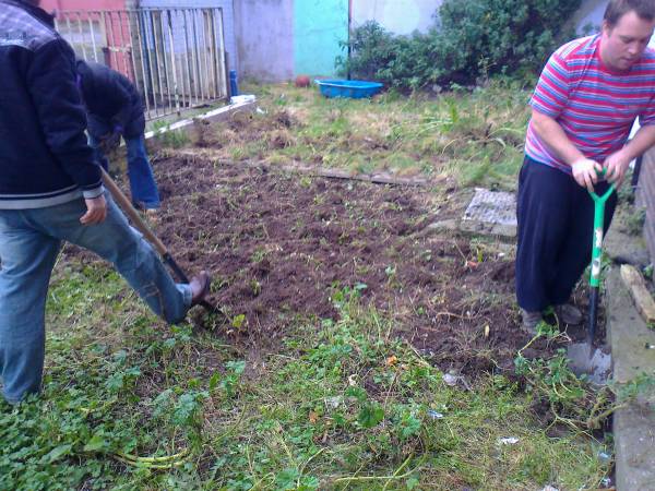 “We got off to a good start today and began cleaning out rubbish and turning the soil in some of the gardens to make way for the planting of seeds and potatoes. This was the most labour intensive process of the gardening and all that’s left now to do is set about planting seeds.”