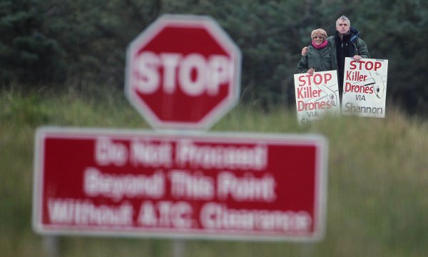 The message is "protest is always bad" but its ok to refuel in shannon on your way to kill and maim innocent brown people and bring who knows what murderous ordinance with you (we won't check), as long as you buy your lunch and maybe some jet fuel (and we'll even waive your commercial air fees despite being in a deep recession)