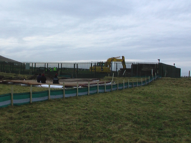The four IRM-S security guards we saw as we walked through the surrounding fields scuttled around the couple of diggers that were lying idle, as it was during a lunch break. Then a good number of workers ran towards the equipment before we got there & frantically erected the 2 sections of palisade fencing which was missing after rapidly putting the diggers & vans that were out in open securely back inside the pre-existing compound.