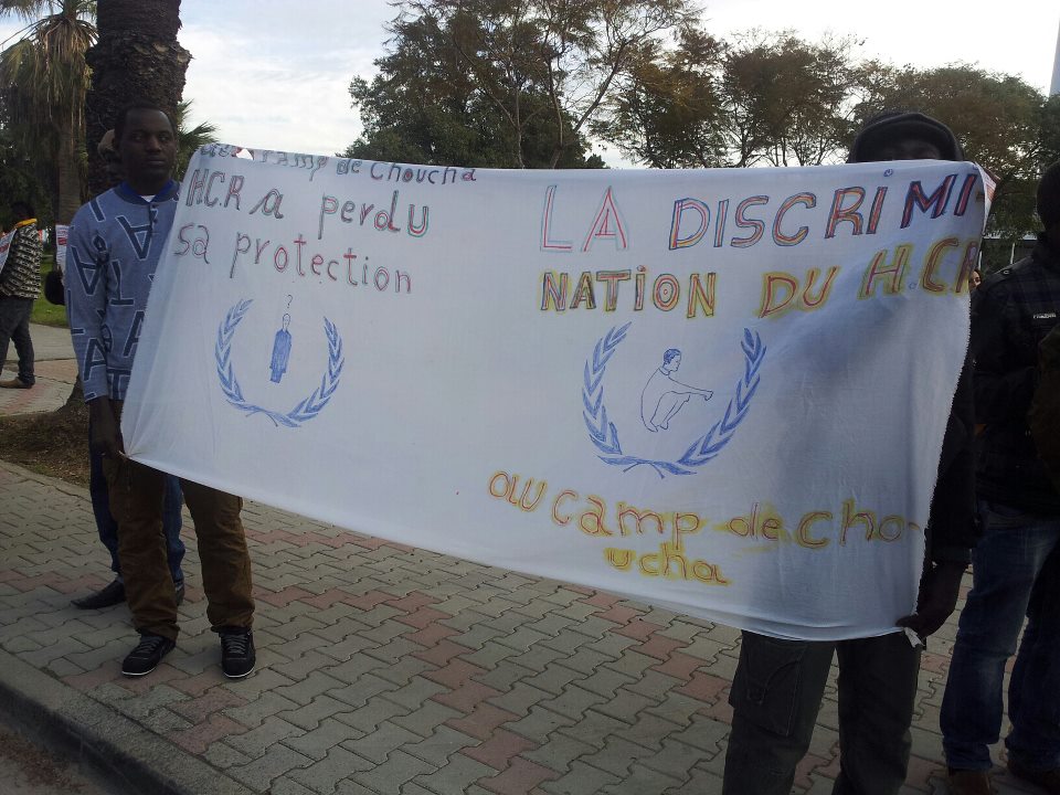 About 100 refugees from the refugee camp in Choucha, which lies on the border between Tunisia and Libya, reached Tunis on Monday 28th January in order to stage a protest that will continue for several days. They had no choice but to live in the desert for two years while the UNHCR negligently worked on their cases, and eventually rejected them as refugees. Since October 2012 they have been denied access to food and medical care. Now the protesters have taken the necessary steps to challenge their isolation and the consequent lack of prospects.
