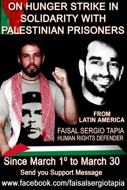 Urgent! Solidarity with Faisal Sergio Tapia - Human Rights Defender on Hunger Strike in solidarity with Palestinian Prisoners since March 1º to March 30 - Send you solidarity support message