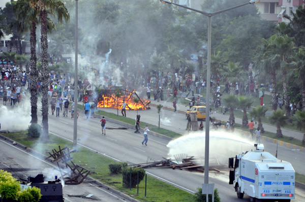 Breakingnews.ie coverage at: http://www.breakingnews.ie/world/police-clash-with-prot....html are reporting on the attack but also quote from Erdogan speech earlier today where he said: “There is no breaking and burning here, we are people of love,” ...it's certainly a strange kind of love