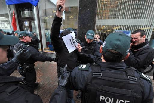 Jump To Comment: 1 2 3 4 5This footage (taken not far from where Obama was speaking) shows the PSNI chasing and pouncing the protesters, preventing them from reaching the Waterfront Hall until the US Warlord had left.