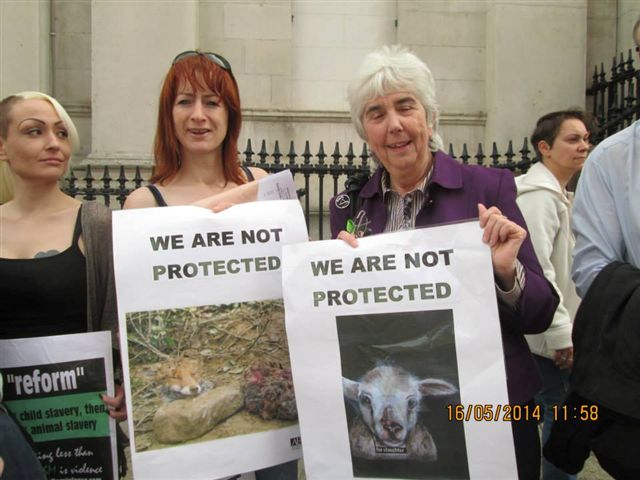 Anti-blood sport campaigners joined various animal protection groups outside Dublin Castle on Friday May 16th to protest at the exempting of blood sports from prohibition under the Animal Health and Welfare Act. Other groups were there to promote animal friendly lifestyles and to highlight cruel animal transport practises.