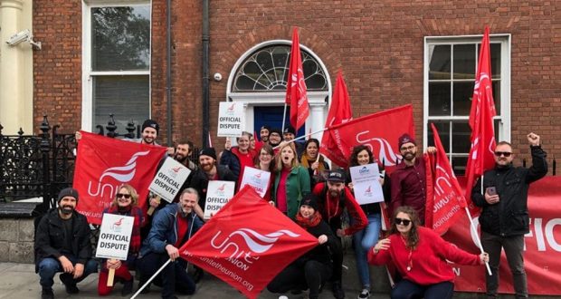 Today’s initial half day strike action by teacher members of UNITE at the Delfin English Language school on Parnell Square for union recognition and improvements in conditions is the culmination of a long organising campaign.