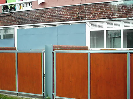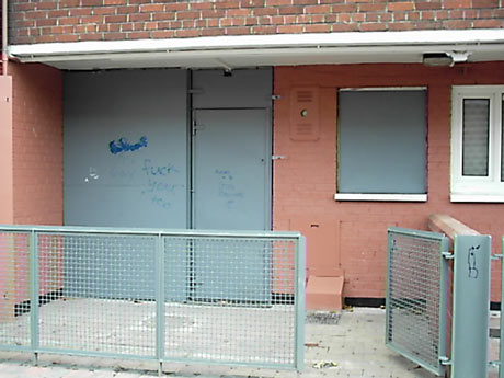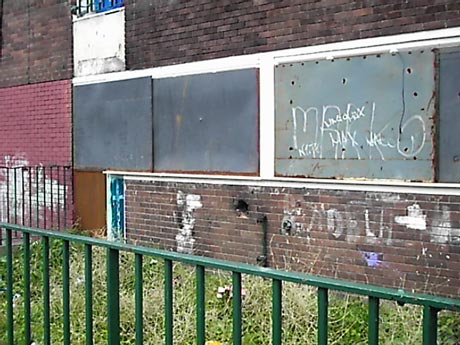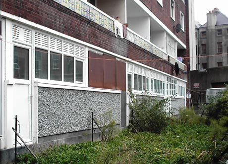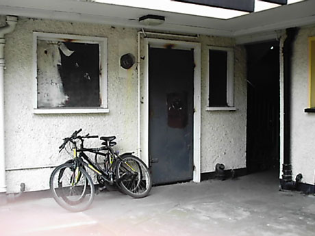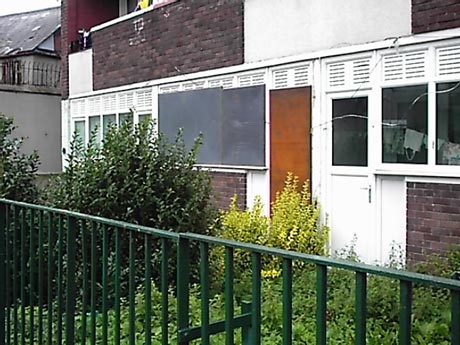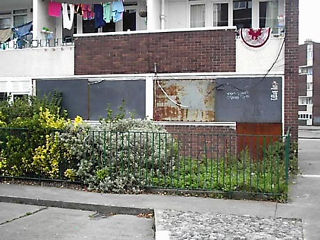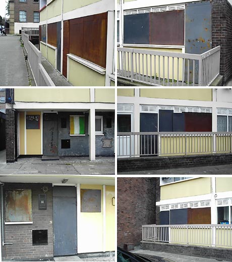 This is the Council notice up on the side of the Basin Street flats in Dublin 8, proclaiming more housing units... loads of the ground floor units were boarded up (bear in mind I didnt take photos of every flat I saw, these photos are repetitive enough as it is...).