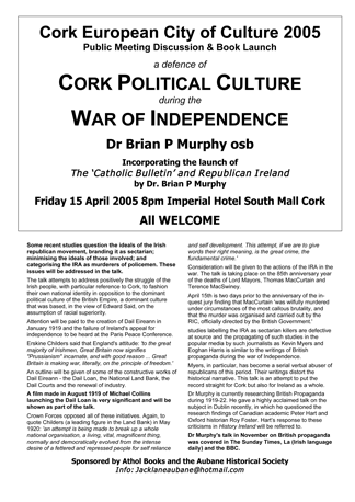 In Defence of Political Culture in Cork during the War of Independence, April 15, Imperial Hotel, Cork.