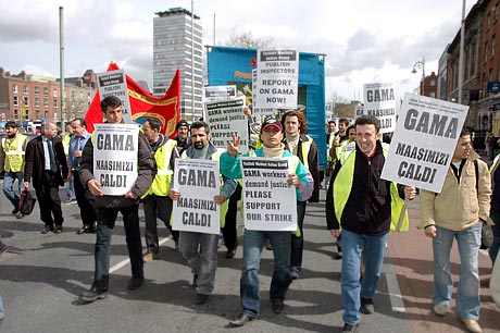 The Gama workers heroic stand is an inspiration. Faced with all the insecurity of their position and the intimidation of their employers and living in a foreign land they have stood up and fought. As far as I can see, I do not live in Ireland, this struggle has the potential to open up a whole discussion on the Celtic Tiger and its use of cheap labor. I am not not sure if it is correct to say this. But it seems to me that the Cetlic Tiger will never be the same again.