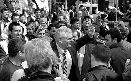 Unfortunately the present trade union leaders, with a few honorable exceptions who have been on the streets with the Gama workers, that exist today in Ireland and internationally are far from the calibre of Connolly and Larkin. The result has been that a major role has been played in the Gama struggle by Joe Higgins and the SP. Nobody with any honesty at all can deny or should try to deny the very positive role played by these Comrades. Seeing Joe's support amongst the Gama workers makes this very clear.