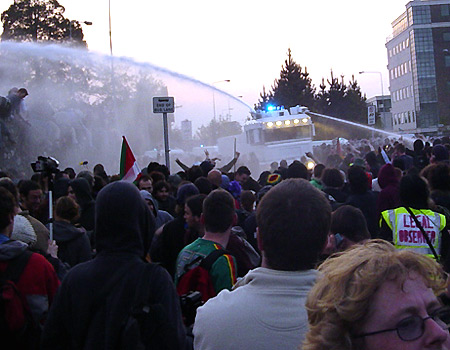 One year ago, on Mayday 2004, the summit of the EU heads of state took place in Farmleigh House in the Pheonix Park. The entire park was filled with surveillance cameras, ringed with fences, draped with barbed wire, buzzed by helicopters, rigged with motion detectors and surrounded with riot police. In the end water cannons were deployed to keep a protestors out of the park History is normally written by the winners and it is common to find each new generation of radicals having to rediscover the stories of those who went before them. Thus, it is not surprising that many of those who protested last year probably were unaware of the history of battles between radical movements and the state that the park played host to in the past. While the park hosts many of the symbols of power in Ireland - past and present - from the monument to the arch-reactionary Wellington, to the US-ambassador's residence and the Garda Headquarters, it has also seen its fair share of opposition. The invincibles assasinated the British Secretary there in 1882, it was the site of many early 20th century trade union ralies and the magazine fort in the park was captured at the start of the 1916 rising and was raided again by the IRA in 1939. The phoenix park is, in many ways, a symbolic battleground for the soul of Ireland.
