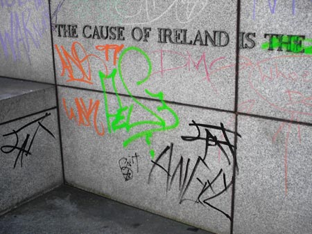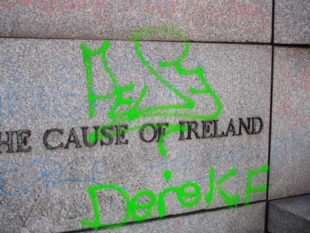 And trying to defend it through metaphysical philosophising is nothing more than ráiméis. The tagging was nothing more than an act of vandalism (I would say 'defacement' but tying that into the balaclava over his face was quite smart).