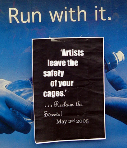 Meanwhile the good folks involved in RTS, Dissent, WSM, DGN, Seomra Spraoi, Certain Death Café, Ya Basta , Food Not Bombs, Artists on Strike, da Street Art Collective and the many other mushrooming elements across the growing libetarian, anarchist network/movement/label of your choice, will continue to walk as they talk, to idolize none whist respecting much, to recognize that the process is as important as the result, and have much much more important things on their mind than green paint on the base of an image.