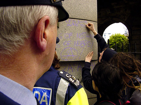 I cannot believe that at a supposedly anti-capitalist protest you would have people defacing a statue of James Connolly. If ignorance is bliss then RTS I'm sure RTS will have a very happy Christmas. I see Cian O'Callaghan in the photos. He must have been letting off steam after is busy few weeks canvassing for Tony Blair's pro-war, pro-neo-liberal Labour Party.
