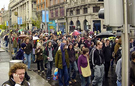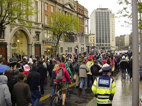 According to the Irish Times the Reclaim the Streets march attracted a couple of hundred, while the Critical Mass event managed a couple of dozen cyclists. Its all rather paltry, don't you think? You'd get more than that at a real Mass in any village in Ireland any day of the week. I had a bigger crowd watching the snooker final in my house tonight than were at the Critical Mass thing. By the way, Murphy won. Worldwide there seems to have been very little revolutionary activity this weekend. Nothing in Dublin. Nothing in London. Makes me nostalgic for the old days. I mean back in the early 2000s no Mayday in London could pass without a good riot. But, this year nothing at all, not even with an election coming up in the UK. Looks like the youth of the world are turning their backs on all this anti-capitalism anti-globalisation claptrap. Its all to be expected. Young people are rather fickle. Something becomes fashionable for young people to do, then it dies out as quickly as it came in. One year the hoola-hoop is all the rage among young people. Then its The Twist or The Hucklebuck. Giving my age away there I think. So, for the past few years World Revolution has been the in thing for young people to be into. Looking at the rather sparse crowds in these photos, I'd say that craze has definitely peaked. Next year will probably kill it off completely. I wonder what will be the next big thing that young people find fashionable, for a while at least. I think it could be religion. Fantastic crowds of young people at Pope John Paul's funeral and Pope Benedict's coronation. Rather more than have been attending the various Mayday events around the world. Still, chin up. These things go in cycles. World Revolution will probably once more become fashionable for a few years in a generation's time, say around 2040. I hope to be still around then, but who knows?