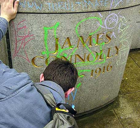 What would a sympathetic person make of students putting graffiti on James Connolly's statue? It would look like another lunatic fringe.