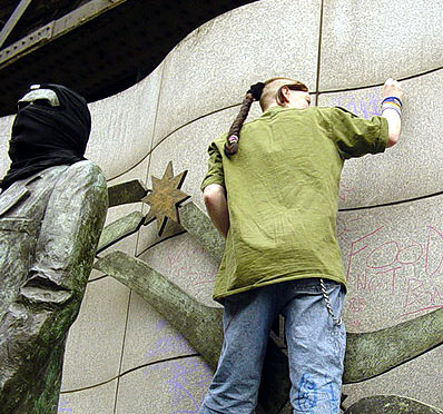 Please, can anyone who was involved in writing all over his monument explain it to me? What does it mean? What's its political significance?