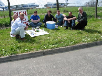 Hard day at the office, Peaceniks celebrate with picnik as Bush chickens out and bypasses Shannon fearing a bad photocall.