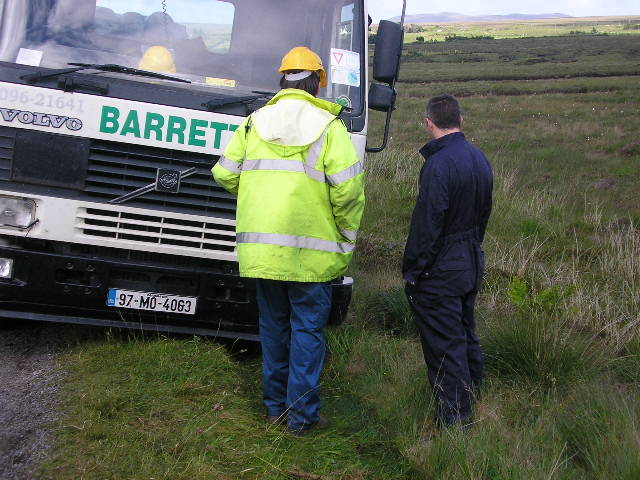 Shell-Statoil-Roadbridge-Sicim then attempted an abortive move of the lorry, unsuccessful in this, they then tried parking it further off the road, in order that the road be passable for their other lorries. Not the smartest of moves as this then got the truck bogged down. So the main-contractor successfully sabotaged the sub-contractors machinery, one would say – only in Ireland, but as there are Italians, Germans, Englishmen, Norwegians, Americans etc… with a slice of the development cake here perhaps such happens everywhere, but it is sure a new one on me.