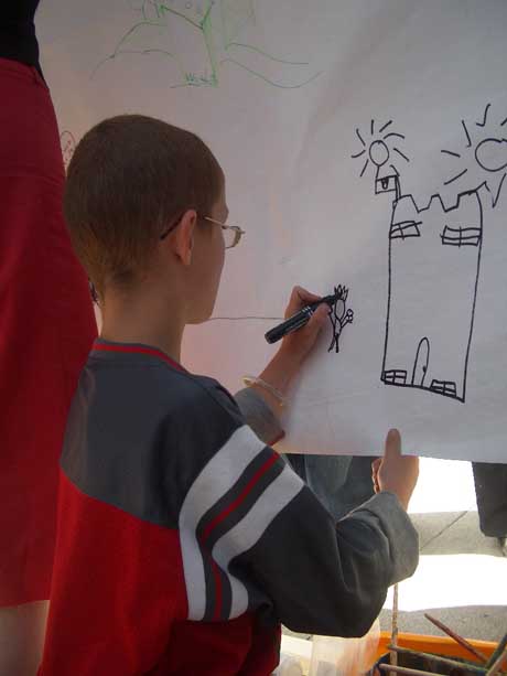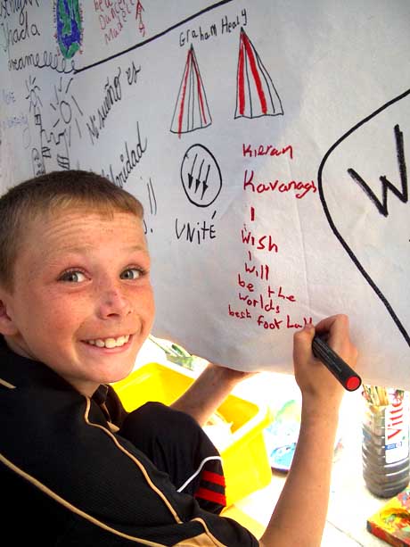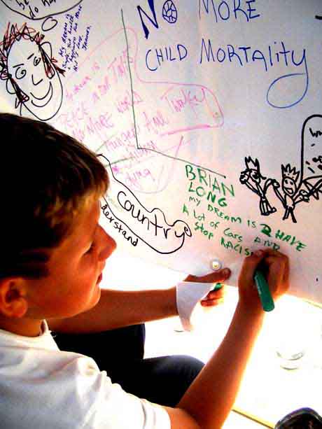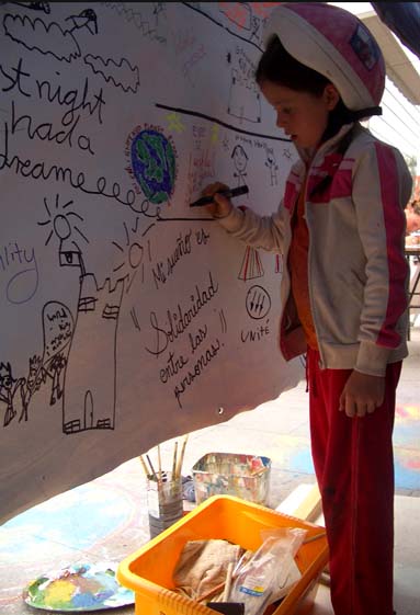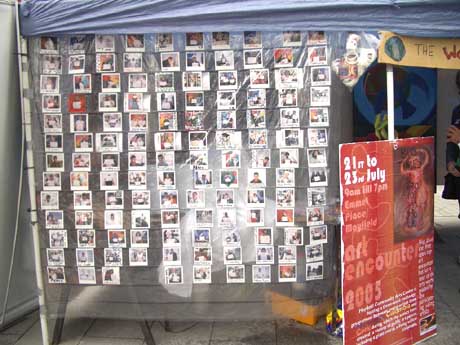 Jump To Comment: 1 2 3 4 5 6 7 8 9 10the postcard is about 2 metres long by 1.3 metres high. it was one of the walls of the tent for the 3 days, many different people signed it; young, old, black, white, brown, loud, quiet, sad, happy......