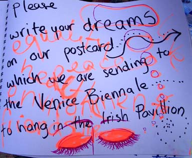 please write your dreams on our postcard... which we are sending to the venice bienelle.. to hang in the irish pavilion.
