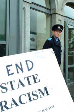 Ireland has been pursuing a policy of expedited deportations of immigrant families for the last couple of years. Amid a rising tide of racism fueled by the rhetoric of prominent politicians (who refer to Turkish workers as "kebabs") there are deep concerns that the human rights of vulnerable asylum seekers are being ignored. Among the families reported to have been snatched for deportation this morning is one which includes a child with an autistic spectrum disorder. An appeal by Denis O Donovan TD from Bantry has secured the assurance of McDowell that this family will not be deported until McDowell has personally reviewed their file. However approximately 35 other asylum seekers with unknown personal situations seized in this sweep have received no such assurances of due diligence. Rosanna Flynn of Residents Against Racism commenting on the current broken system said: The asylum system continues to be in disarray. McDowell will deport women and young girls who have fled here fleeing Female Genital Mutilation. His response has been to send them back to a country where the World Health Organisation estimates that over 50% of the female population has had the operation performed on them. We need an asylum system that is effective and fair. We need the asylum system taken out of McDowell’s hands completely and handed over to a body such as the Human Rights Commission that will view the asylum system from a human rights angle and not as a system that deports as many people as possible in order to facilitate electoral gain. All these families have been signing on at Garda stations as required by law. It would appear that the Gardai, through the direction of the Minister for Justice (Michael McDowell) are creating the conditions that will encourage the creation of a completely underground illegal immigrant population. This is an arbitrary, arrogant and ineffective set of policies which reflect a lack of thought about the realities of immigration in the 21st century. Irish activists are currently undertaking an attempted blockade of GNIB at Burgh Quay to prevent the mass deportation scheduled for approximately 11:30pm tonight. Two people have been reported arrested on our newswire already. If you can get down to the blockade then your presence will be welcomed. |
