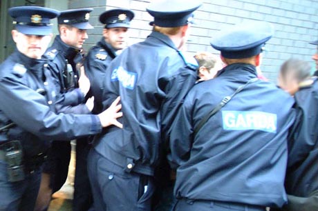 we waited outside until the last van came out, there were heavy handed tactics used by the gardai and mainstream journalists took numbers and said they witnessed gardai assaults, the woman has left her children here, she was held inside the bureau from before 2pm till she was taken out at 8pm, without any food or water given to her. people were on the phone to her and she was in a very distressed state before being driven away