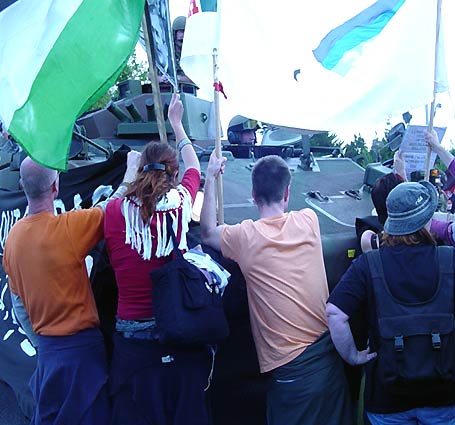 If you don't believe it, there's a link to the footage taken by an Indymedia videohead somewhere on the archives of this site. Maybe someone can post the link...