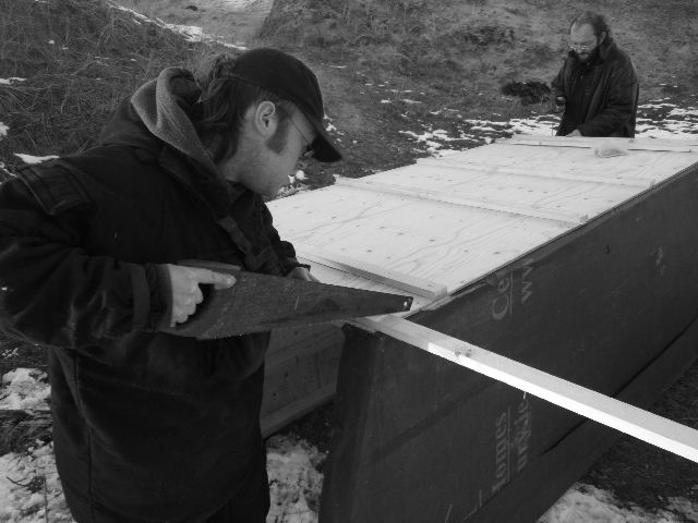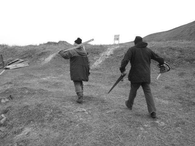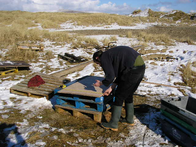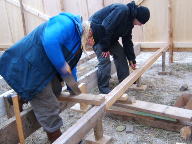 construction work at the camp is still ongoing. at the moment our main building project is a communal area/ sitting room. were building it out of timber and ply and hopefully with a nice truck tarp roof if we can find one (anyone?). we got the idea for this type of structure at a protest camp in england called camp bling at south end on sea.