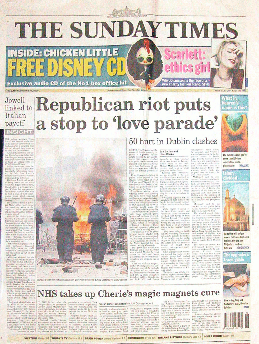 Front page of Sunday Times Feb 26th 2006