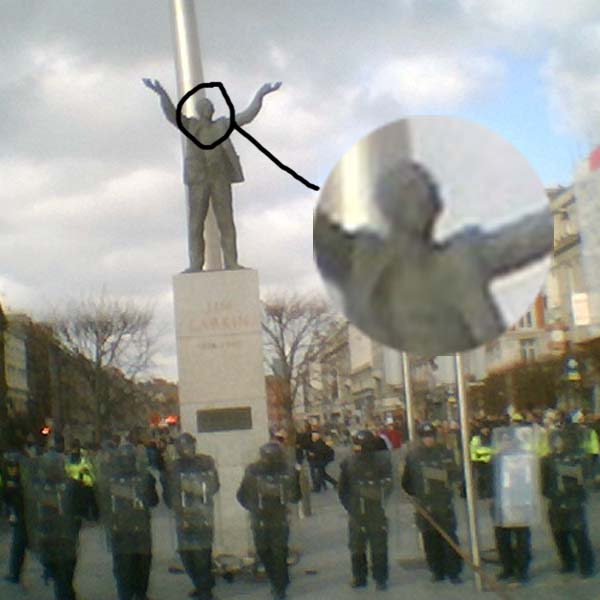 i tink its despicable the way this william martin murphy character published d picture of dat fella on d plinth without even blurring out his face. in all likelihood, he was only getting outta d way an' now 'e's gonna get nicked!!!! ya big eejit yeh!