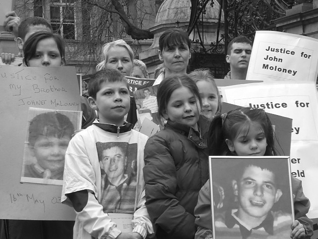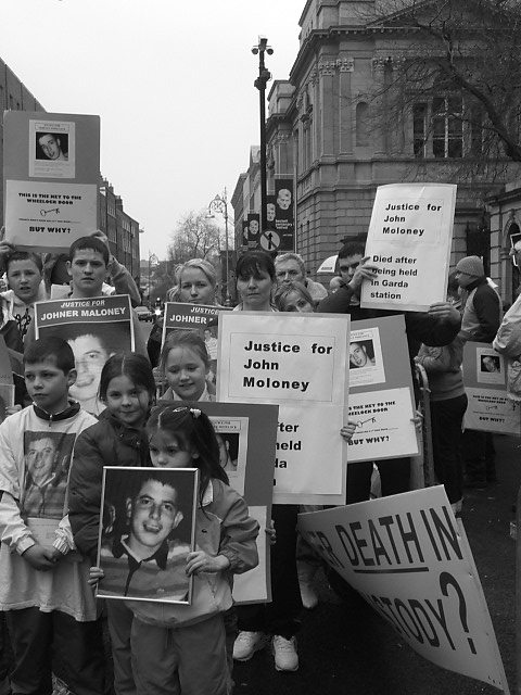 I have read the article regarding Mr Maloney's death, and it is a damning indictment by the 'state' and the gardai, to be investigating themselves...(even the Independent Garda Ombudsman) is not independent...as we are all led to believe.....some of the points raised in the (original) article, certainly 'caught my attention', (1) related to the garda refusal to hand over clothing to the family (2) having to 'go further afield' for an 'expert (3) the "Coronors (preliminary) report (4) the actual (first) medical opinion of a 'visiting doctor' to the garda station that was offered/given (5) Minister Mc Dowell's 'lack of interest...in the case (6) the 'distrust by the (victims family) of the Gardai, (which is understandable) and a 'refusal by the family to 'give (to whomsoever), any medical records....(7) The Director of Public Prosecutions has decided that no charges will be brought against any Gardai in relation to Terence's death (8) type of inquiry- that is completely independent of the State and Not someone like Judge Kevin Haugh---(I would like to point out at this stage, that a Barrister was recenytly appointed by dermot Aherne, to the Courts of human rights....that same Barrister/judge, in a 'defence' on behalf of a Defendant.....DENIED ALL ALLEGATIONS OF CHILD SEXAUL ABUSE IN IRELANDS INDUSTRIAL SCHOOLS AND (CHILDREN THAT WERE ABUSED, SEXUALLY, IN ADULT MENTAL HOSPITALS IN THIS STATE) ....not surprisingly, i can understand the "family's" point of view, they have NO TRUST OF THE IRISH JUDICIARY. (9) the Minister for Justice formed his opinion that Terence himself was the sole cause of his own death..........(THAT'S an admission, that the state failed to protect Terence.......while under arrest, or under state custodial protection....(in all of the suicides of this state) over the years......no reports that i am aware off, would exert, or report, that a 'suicidal person" (intentionally) injures themselves before the 'final act? Indeed, where such self imposed injuries were being inflicted, it would be the usual case, that the person would be restrained from doing so,....which raises this undeniable uncontested question..."why do so, while in garda custody, surrounded by ? how many members of the garda, in the station? (10) .It took them ten minutes to ring an ambulance for Terence. When the ambulance men came, he wasnt found in his cell - he was out in the hall........the reader then writes...(11) "I dont want to get into a class struggle debate here"....with.........."We have to fight and lobby for everything - politicians, judiciary, district courts, high courts - just to access simple documentation attached to this case..................I am afraid to say...........IT IS A CLASS STRUGGLE.....if so many 'walls by the establisment" has met you, in seeking the truth!.........i end off with (12) We have detailed evidence from photographs to show Terence was bruised - excessively bruised, all over his body. He had a two and a half inch open laceration on his spine. He had a shard of metal embedded above his eye, which we have no idea where this came from. Plus by a doctor's admission he had a major blow to his head. Now Terence was supposed to have been able to hang himself from two and a half feet off the ground. Unless he was on a bunjee rope its hard to see how he could have got those injuries. .......................says it all. off course.....when i read about the gardai being 'transferred' to another 'station', it reminds me of members of religious orders 'moved into other institutions....(where abuses of children continued)..unchecked....(is there a connection?) hmmmmmm