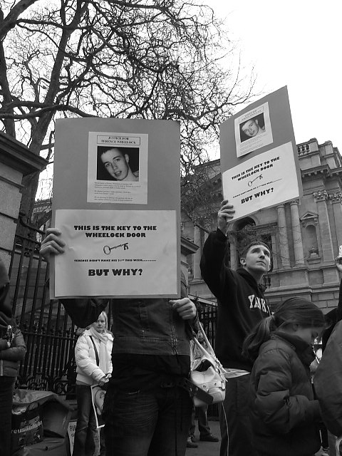 I remember my 21st birthday. My friends all came out and we hijacked a large corner of a pub in town. There were cards, presents, pints bought and songs sung. That's nearly nine years ago for me. Your 21st is generally seen as a celebration of your arrival into adulthood. In your twenties you grow up more, make new friends, lose others, find more of your independence, switch jobs a few times, make mistakes, learn, maybe travel a bit, fall in love, start a family. This afternoon one Dublin family, the Wheelocks, will be marking the day of their sons' 21st birthday, were he alive, outside the Dáil with a protest. Terence Wheelock died in September last year after being on a life support machine for three months. He had been in a coma since his arrest and detention on June 2nd in Store Street Garda Station, along with three other people on suspicion of car theft. The Garda Press Office made a statement, claiming that Terence had tied a ligature around his neck, and secured this to a "fixture" which was "counter sunk into the wall". The subsequent renovating of the cell after his death, and the lengths to which the Gardai went to prevent the family from accessing his clothes, has raised many serious and troubling questions about what happened to Terence Wheelock while in custody in Store Street on June 2nd, 2005. I met up with Terence's brother Laurence in the family home in Summerhill, who told me about what is happening at the Dáil today at 2pm. "The protest is for people from the local and wider community who have an interest and who would empathise with our situation as a family," says Laurence. "Terence would have been 21 today, but he never made it to his 21st birthday. We're asking the Minister for Justice: Why? We'll be doing a birthday card protest. We cant present Terence with a card on his birthday, so instead we're presenting it to the Minister for Justice. In doing this, we're asking him - "Why is it that we cant give this to Terence today?" The card is going to have a key on it, a key to the door for his 21st birthday. People will be handing this in at the gate, in a democratic protest. This will hopefully draw attention to our campaign in a peaceful and dignified way."