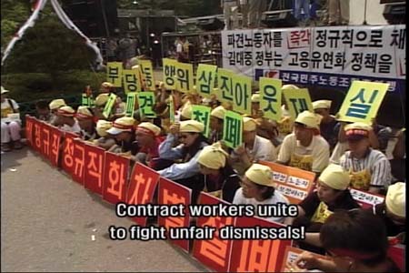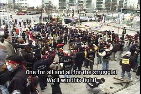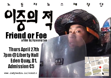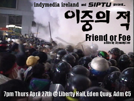 At this stage now I've seen countless activist and struggle type films, the narrative structure of which rarely wavers from the standard. I saw Friend or Foe about a year ago, and its amazing, a real breath of fresh air. The Korea Telecom workers commitment, methods (wait til you see their "Project @" action!!) and dedication is truly inspirational. The film has just the right mix of workers issues and direct action... looking forward to seeing it again.