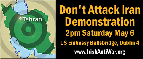 The issue of nuclear energy, I am sure Curious knows, is the main headline in the warmongering going on against Iran. A country that has signed the Non-Nuclear Proliferation Treaty, and as such is entitled to develop nuclear capacity, is being now threatened by the same powers that attacked Afghanistan and Iraq. The UN Security Council is due to discuss the Iran situation after April 28th. And that's why the iawm is calling for a demonstration on May 6th around the US Embassy in Ballsbridge - Dublin.