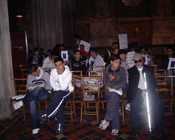 Get your cameras & microphones & mobiles down to St. Pat's Cathedral now! almost two years ago the non-regularised migrants of Barcelona occupied the Church of the Pi and the Cathedral. It was a night of very high politics and ended with a brutal eviction of cathedral, and split in the RC church, the then cardinal wanted 1,600 muslims out by Sunday mass, and the priest of the "pi" refused to allow riot police "defile the temple". Some think this resulted in an "amnesty" and changes in Spanish migration law which yet is claimed by the ZP regime as one of its good things, certainly Spain has been the only state to "soften" its migration stance. We made a movie about it, I did the subtitles in April, we intend distributing the documentary globally to inspire others to do the same.