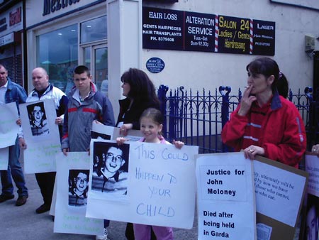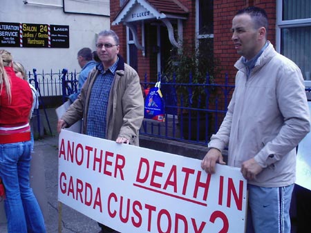 "My youngest brother was handing out leaflets for the protest outside Store St Garda Station on the 3rd of June. He's been getting hassle all the time from the Garda. A Garda saw him handing out leaflets and told him to get out of the area - but it was right across from the family house [just off Summerhill Parade]. My brother said to the Garda "I'm delivering these leaflets", and then the Garda jumped on him. All of a sudden a rake of police cars arrived in. The Garda assaulted my mother, father, and my pregnant sister. They hit her in the stomach with a baton. She was up in the Rotunda Hospital all night, with pains in her side. I dont know how she is at the moment to tell you the truth." This comes in the same week as Pat Rossiter, the father of 14 year old Brian who died in police custody in 2002, was found not guilty of a Public Order charge. The judge castigated the gardaí involved in this case. It looks like the gardaí are under serious pressure and are determined to try and intimidate anybody who stands up for themselves or their families. The Wheelock family need your support, now more than ever. There will be a protest outside Store Street Garda Station on the 3rd of June. Please Support the Family's Campaign for Justice. People will be meeting up at the church on Sean McDermott Street at midday. For more information please check the event on the Indymedia event calendar. The Moloney Family, who have been working together with the Wheelocks, will be holding a protest outside Bertie Ahern's constituency office "St Luke's" on the Drumcondra Road this Saturday at 11am, for more info click here. |