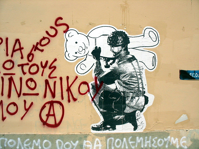 Pictures of the radical wall art in the Politecnik University in Athens, Greece.