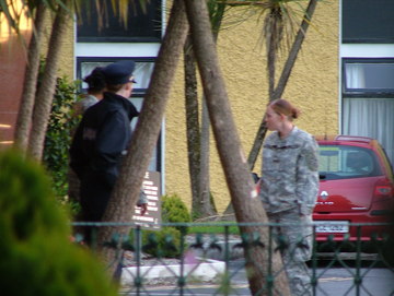 While Driving through Ennis town yesterday afternoon a local anti-war activist put six young US service men under (citizens) arrest. On Thursday morning an US troop carrier landed at Shannon with technical problems. This is a common occurrence with the chartered troop carriers that come through Shannon Airport. With an average of 1100 hundred troops going through Irelands second international airport on a nightly basis these aircraft are flat out ferrying young men and women to Iraq. Many of these stranded soldiers were billeted at the West County Hotel in Ennis near where peace activist Conor Cregan encountered six young US servicemen on the main Ennis to Limerick road. Cregan immediately called for the six to stop. “I am placing you all under citizen’s arrest. Do not move” he shouted as the stunned men came to a halt. After assuring the men that they were not in jeopardy the peace activist made an emergency call to Ennis Garda Station. Cregan called for the Member in charge to send a van to pick up these awol soldiers but Garda O'Sullivan’s response was less than helpful. The deskbound officer was more interested to know if they were armed or their commander in chief George W Bush was among them. Mind you he wasn’t so funny when reminded that that all emergency calls were recorded. Convinced that he wouldn’t get any joy from the Ennis Garda station Cregan went into the hotel to look for the Commanding Officer of the US troops. He approached a NCO but she could not see the man in charge but then Cregan spotted a familiar face coming towards him. DGda Jarlaith Fathy, a man who once tried to frame him for a crime he did not commit, was leaning over the reception desk.Cregan called for the detective to take charge of the soldiers. Fathy followed him out to the front of the building where the six were sheepishly edging their way towards the entrance to the hotel. One polite young trooper leaned over and extended his hand towards the peace activist and apologized. Cregan again assured the young man that he was not in trouble and informed the lost patrol that in fact this was a diplomatic matter and that the Irish government was the wrongdoer in this situation. He thanked the men for their cooperation and left them in the hands of DGda Fathy who ushered them back into the hotel. Later Conor Cregan registered a complaint with Superintendent John Kerin of Ennis Garda Station. Supt Kerin seemed surprised that anyone would complain about a foreign army walking the roads of Ireland and tried to convince that this was not a major issue. The top cop was more annoyed that Mr. Cregan had rang the Ennis Gardai Station on the 999 emergency line and informed him that he would be investigating the matter with a view to prosecute. Later Conor Cregan returned to the West County Hotel to follow up this story. Standing outside the front entrance were three NCO’s, of the American Army, smoking cigarettes and a chat with a member of An Gardai Siochana. These young soldiers were enjoying their down time but complained about lack of heat. One soldier informed the reporter that “the weather would be a lot hotter in Texas” where she was from. She also said it was hot in Iraq and after their two week vacation she would be returning to duty in the middle-east war zone. Standing beside her was a friend from her home state and a sergeant from “Hollywood California” who would have liked to visit the town of Ennis but had no clothes to wear. When asked why they were not allowed to leave the hotel she replied that “the people her might not like to see us”. Another soldier dressed in “Army” shorts and T-shirt explained that they were invited to Ireland by the Irish Government. When Conor Cregan started to clarify the nature of a neutral state like Ireland and the responsibilities that came with this status a member of An Gardai Siochana came over and just as he explained that under international law that all belligerent combatants should be interned under close arrest the young Ennis Guard asked him to identify himself. “Conor Cregan and you are” “I am a Guard that’s all you need to know” “And Guard you don’t have any numbers on” She replied to this sternly and ushered the US troops back into the hotel. After a while two another uniformed Garda and two plain clothes Garda arrive on the scene. The situation seemed to be in hand so this report left. |