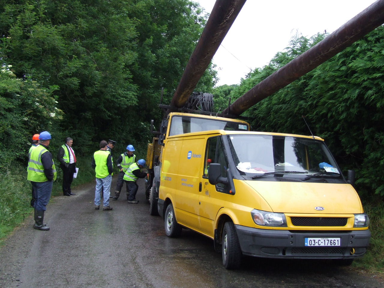 The countryside is littered with pylons and poles.I take it that its poles the esb have on the lorry in Bantry? Theese poles are saturated in creosote. Under an EU directive"amature creosote is banned and restrictions are placed on ALL wood treated with creosote". The reason its banned is because Creosote is a pollutant,toxicand carcenogenic.I suggest the esb take this load of timber away and dispose of it properly before the groundwater gets contaminated.There is an EU Directive to protect the groundwater too,and another one to protect habitats.And so on and on. ESB;the show is over,pack up your Circus and go,we have enough of your nonsence.