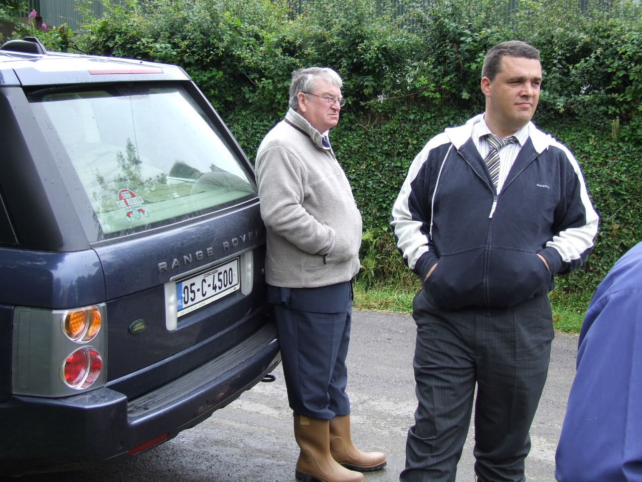 Liam O’Sullivan’s car, the dark grey Citroen, blockaded between horsebox and cars.