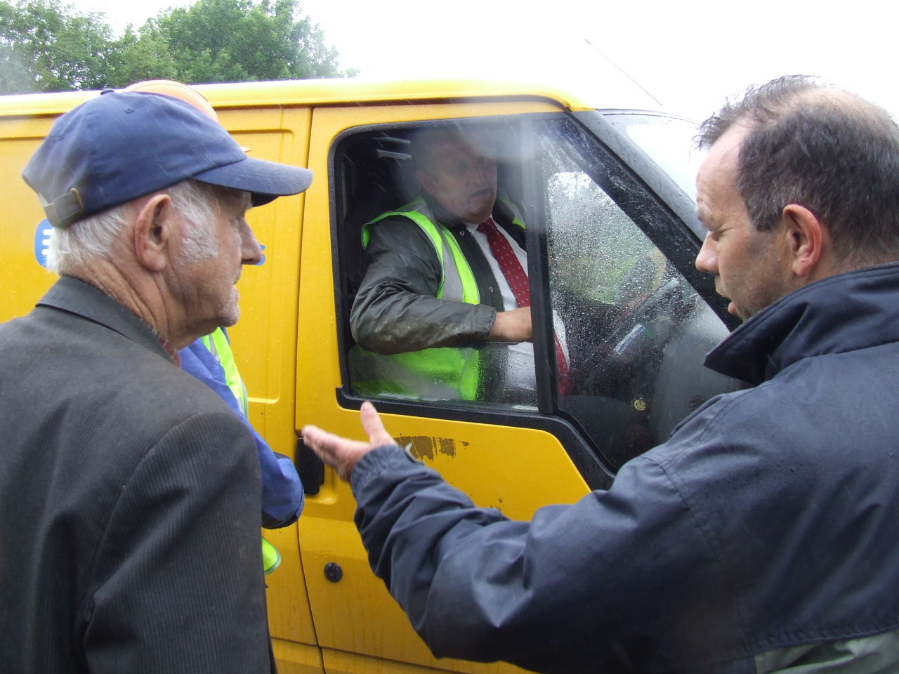 ESB Networks Manager, Liam O’Sullivan stood with his foot under that truck for almost three hours. Finally at about 12 noon he relented and sat into an ESB van which was parked beside the gate. The van was parked in such a way as to make it very difficult for McSweeney to remove his digger truck. Joe had his cows ready at the gate across the road, waiting to cross. He told O’Sullivan to move the van to let McSweeney out so as to let his cows in. O’Sullivan said he would move the van further up into the driveway. There were local supporters blocking his way up the driveway so the only way he could get out was to reverse back. Joe and Jim Burke told him to back the van out on to the road. He refused and said he would only go forward into the driveway. The Gardaí were asked to direct him to move and they also refused. RTE / TG4 tv crew and print media photographers had just arrived to hear Joe say to O’Sullivan - “Can’t you find reverse in that van, or do you want me to find it for you?!”
