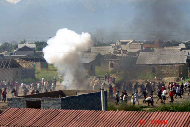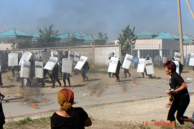Currently the campaign of repression against Shanyrak and Bakai continues. Over a hundred people are currently arrested having been picked up from the bus stops leading out of the region. Many had not even been in the area on bloody Friday. The arrested are being badly beaten in the stations in an attempt to make them sign confessions to having organized the uprising. None of them, including some now seriously wounded are being refused medical treatment.