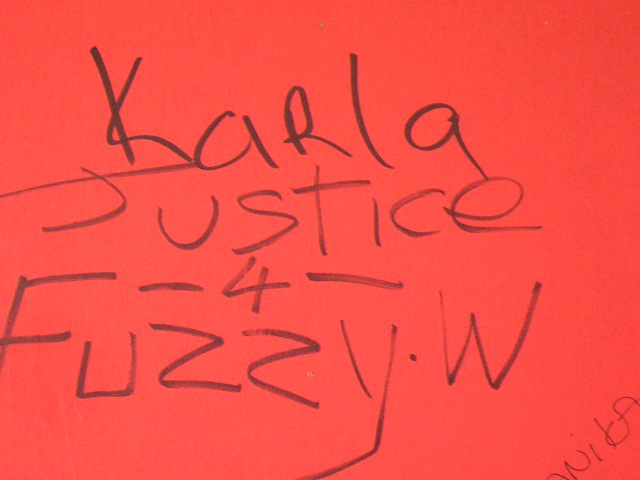 Freehand graffiti around Tryone House demanding Justice for Terence