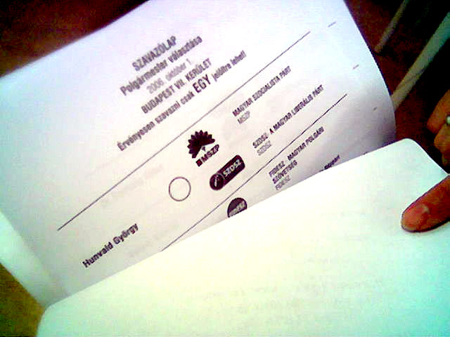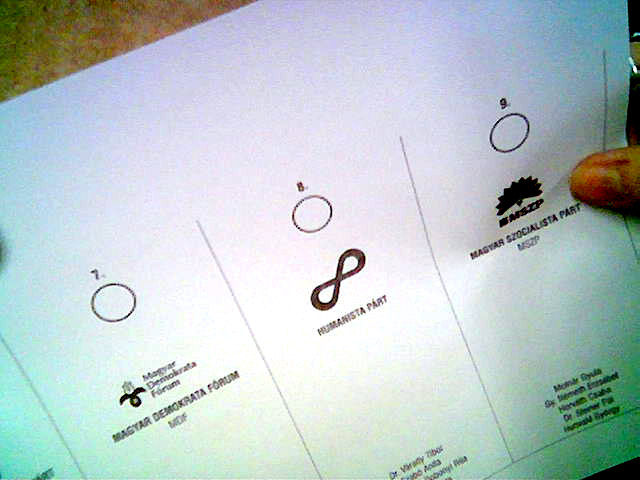 ex-Pioneer voted mostly for the Humanist list ( http://www.humanista.hu ) - or so she tell me, I wasn't in the booth with her at the time. There's still a secret ballot in Hungary.