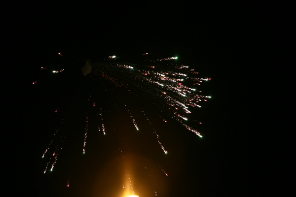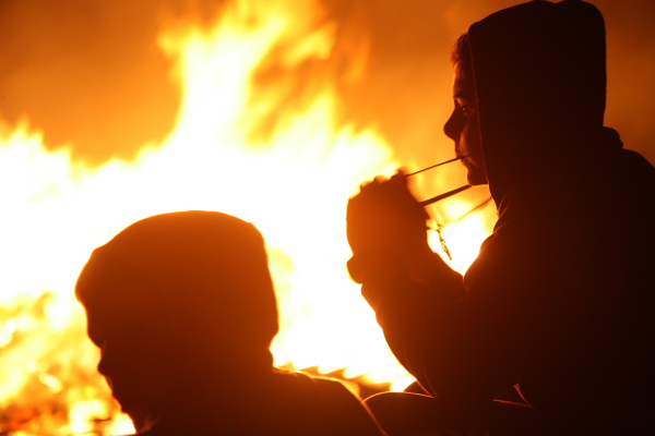Me and my m8s have a bonfire goin in this little green,goin agout 30 feet into the air,and we are settin off fireworks like mad.It's all goin grand.